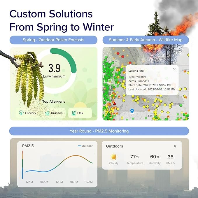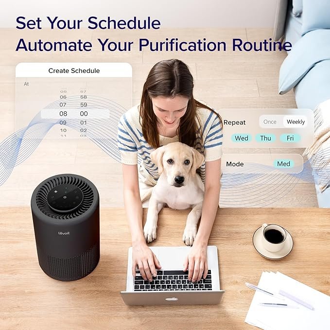 With smart app control, you can adjust settings, monitor air quality, and schedule purification cycles from your phone or through voice assistants like Alexa and Google Assistant. Its ultra-quiet operation (as low as 24 dB) makes it ideal for sleep and focus, while the compact design fits easily on a nightstand or desk.