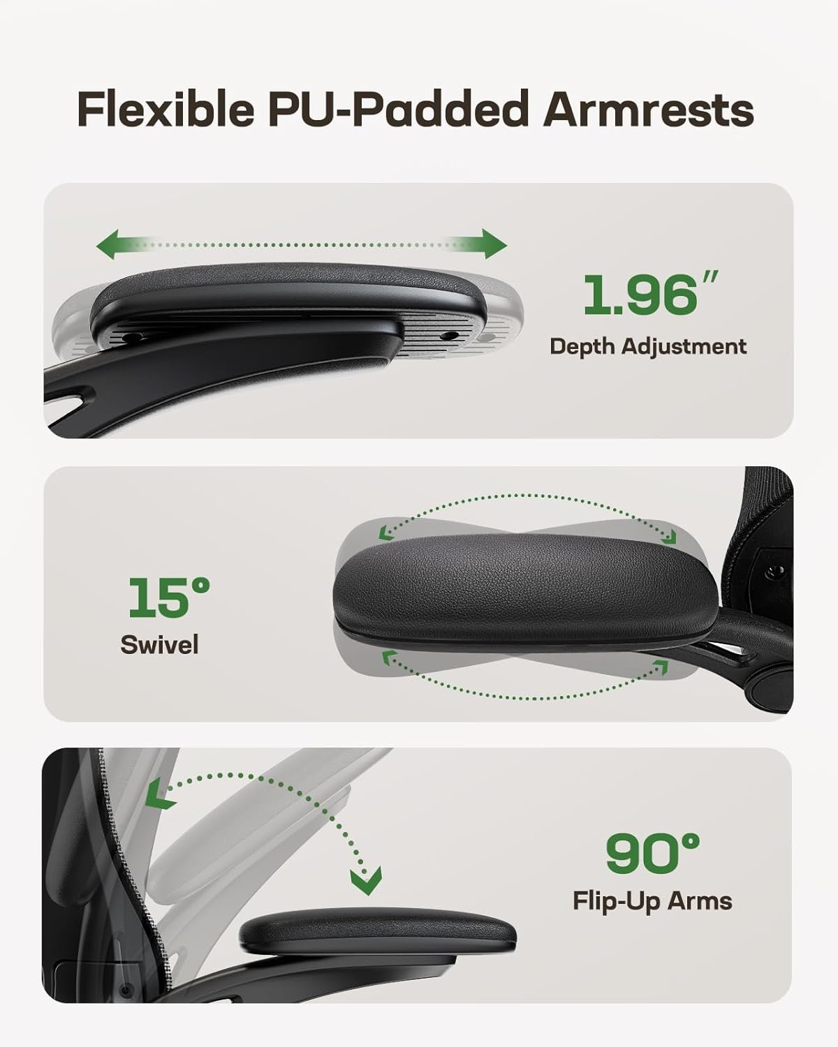 The Marsail Ergonomic Office Chair is designed to bring all-day comfort and productivity to your home or workspace. Featuring a breathable mesh back, 3D adjustable armrests, lumbar support, and a reclining high backrest, it adapts perfectly to your posture and helps reduce fatigue during long sitting hours. The thick, high-density foam cushion provides lasting comfort, while the sturdy metal base and smooth-rolling casters ensure stability and effortless mobility. With multiple adjustment options—including tilt tension, headrest angle, and seat height—this ergonomic chair delivers personalized support for work, study, or gaming. Built to hold up to 300 lbs and certified by BIFMA and SGS for safety and durability, the Marsail Office Chair combines style, performance, and comfort for a healthier sitting experience. Ideal for anyone looking for a premium ergonomic home office chair that blends modern design with advanced functionality.