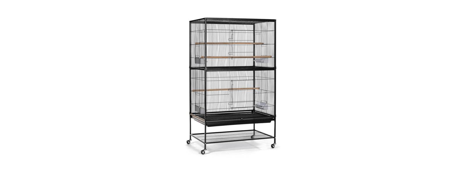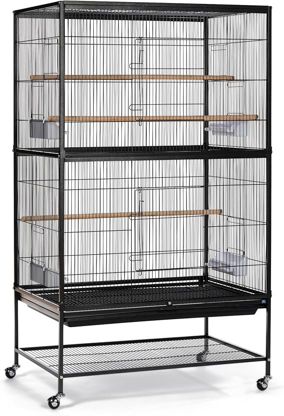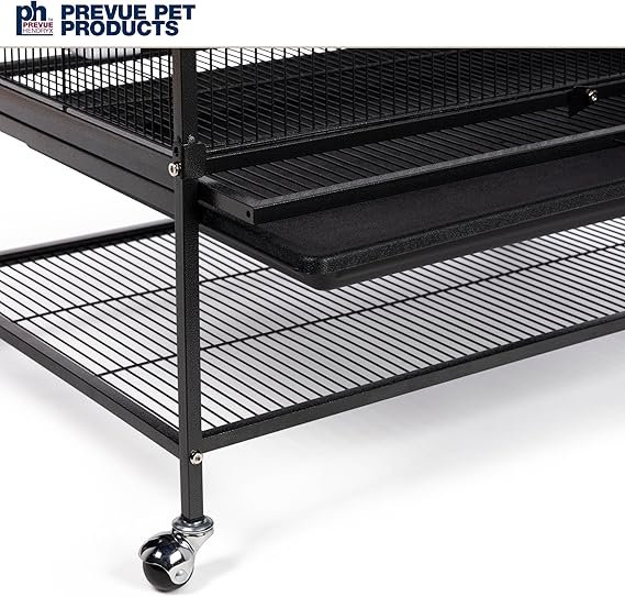 Give your birds room to stretch and socialize with the Prevue Wrought Iron Flight Cage with Stand (F040). The durable hammertone-finish build features large front doors, 1/2" bar spacing, multiple perches and cups, and a slide-out grille and tray on a smooth-rolling stand with storage shelf for easy cleaning and mobility. A safe, stylish habitat for finches, parakeets, and canaries—check current price and availability to see if it’s the right fit.