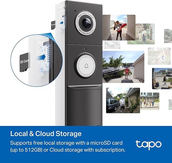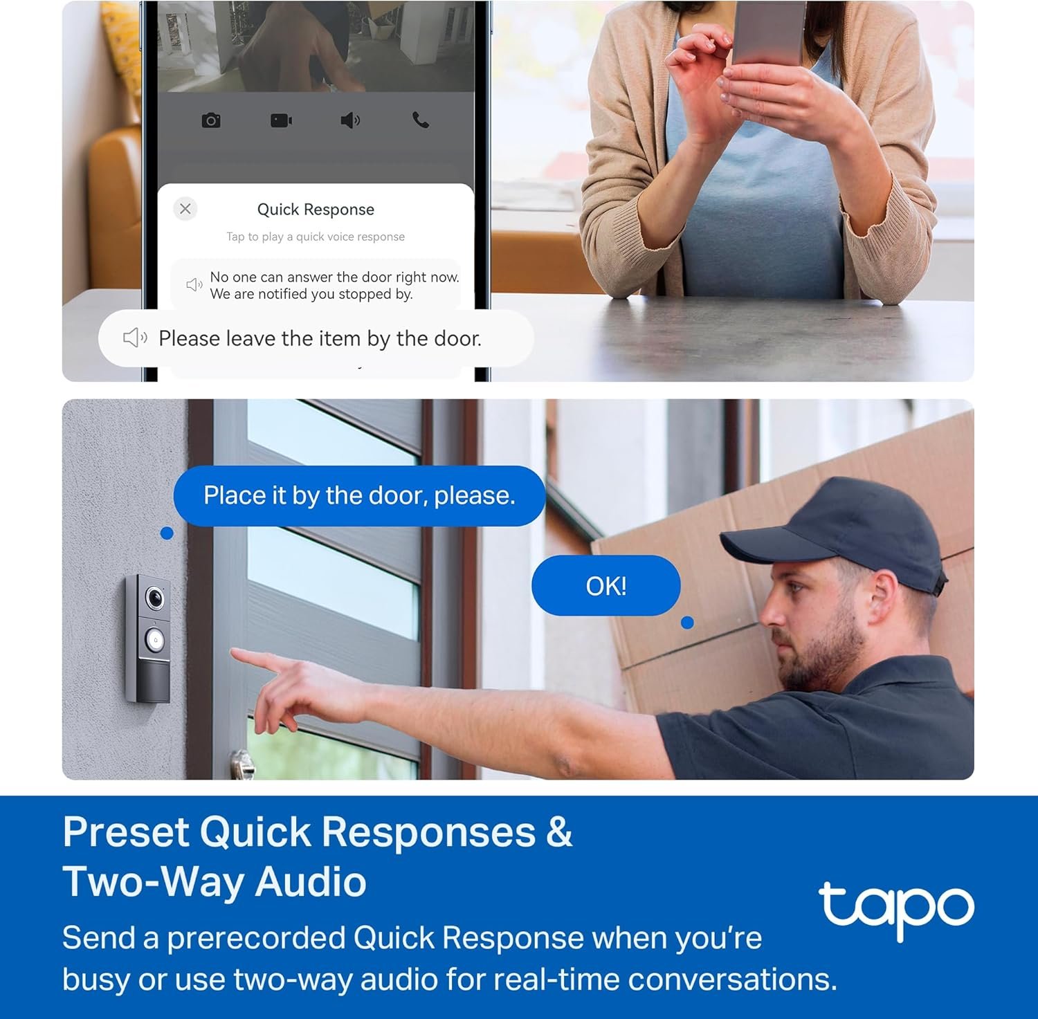The TP-Link Tapo D225 Smart Video Doorbell delivers crystal-clear 2K QHD video with an ultra-wide 180° field of view, letting you see every detail from head to toe. Equipped with AI-powered motion detection, it can accurately identify people, packages, pets, and vehicles while sending instant alerts to your phone. The Tapo D225 offers both battery and wired installation options, featuring a powerful 10,000mAh rechargeable battery for flexible placement and continuous performance. Its built-in spotlight and full-color night vision ensure sharp, vibrant images even in low light, while two-way audio lets you communicate with visitors in real time. With free local storage, advanced privacy settings, and compatibility with Alexa and Google Assistant, the Tapo D225 is a reliable and subscription-free choice for smart home security.